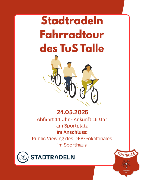 Der TuS Talle organisiert am Samstag, den 24.05.2025 eine Fahrradtour zum Auftakt des Stadtradelns.